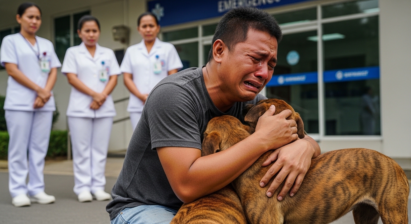 At sa gitna ng ospital na puno ng pagmamadali, makina at ingay, yumuko siya at niyakap ang aso na parang ito lamang ang matibay na natira sa kanyang mundo.